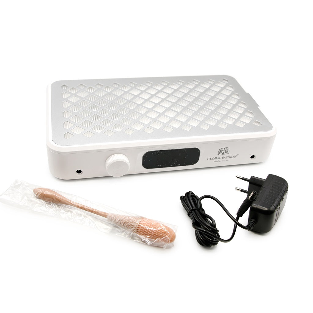 The Global Fashion GFD-2000 Turbo 180W desktop manicure dust extractor with two fans and a powerful 7,000 rpm is the ideal solution for maintaining a clean and healthy work environment by effectively removing dust generated during nail filing and polishing. Thanks to a powerful 7,000 rpm motor and brushless turbine technology, the device delivers superior suction power without excessive noise and a long service life.