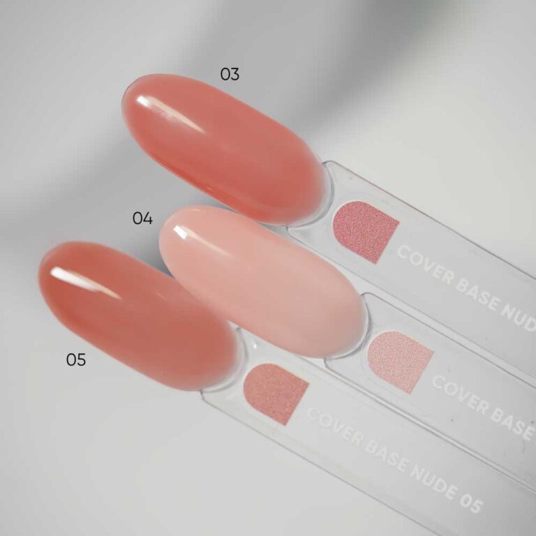 Application technology: degrease the nail plate; make an elastic lining of the base and polymerize; evenly distribute Cover base nude and carefully level. Polymerization: UV – 120 seconds, LED – 60 seconds.