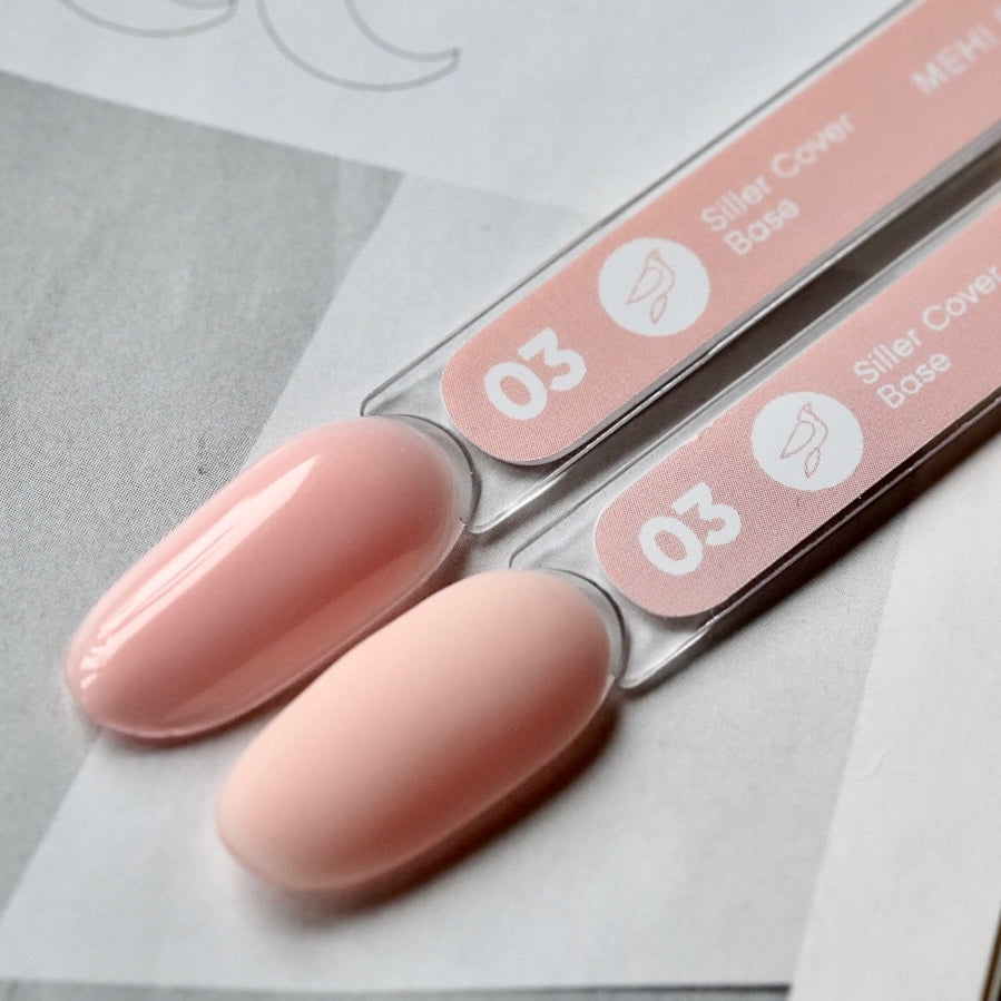Siller Professional's Cover Base №03 is a medium-weight elastic camouflage base that self-levels easily and has a solid color.