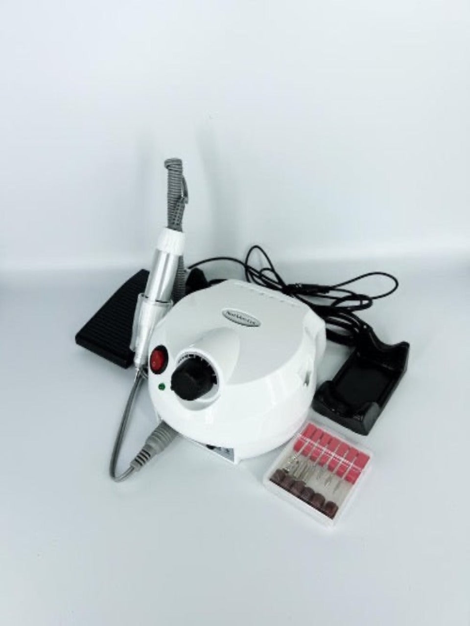Professional electric acrylic nail drill file machine kit including all attachments. Reached speeds of 25,000RPM. Compact hand piece making it easy to grip. Easy to Use Speed Control Dial with Forward and Reverse Operating Switch.