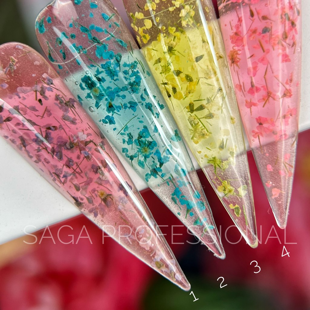 SAGA Professional Gél so sušenými kvetmi je inovatívny produkt, ktorý pomôže vytvoriť jedinečný a neopakovateľný dizajn na vašich nechtoch. Gél obsahuje prírodné sušené kvety, ktoré vašim nechtom dodajú krásny a žiarivý vzhľad. Sušené kvety v textúre ležia ploché, hladké a nebudú vyčnievať na manikúre. Gél so sušenými kvetmi možno použiť v rôznych dizajnoch manikúry, od klasických French manikúr až po zložitejšie a detailnejšie dizajny. To pridá vašej manikúre jas, eleganciu, romantiku a ďalšie efekty.